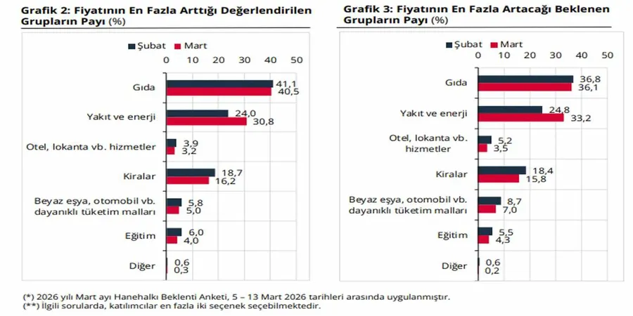 Enerji ve yakıt kalemleri de vatandaşın fiyat artışı beklediği diğer önemli başlıklar arasında yer aldı. Bu durum, temel tüketim harcamalarında maliyet baskısının devam edeceğine işaret ediyor.