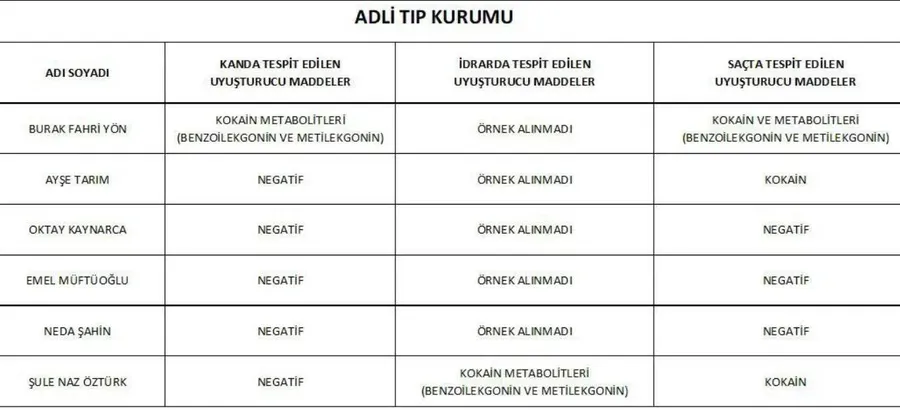 Öte yandan aynı soruşturma kapsamında gözaltına alınan Ayşe Tarım ve Şule Naz Öztürk’ün uyuşturucu testlerinin pozitif çıktığı öğrenildi.