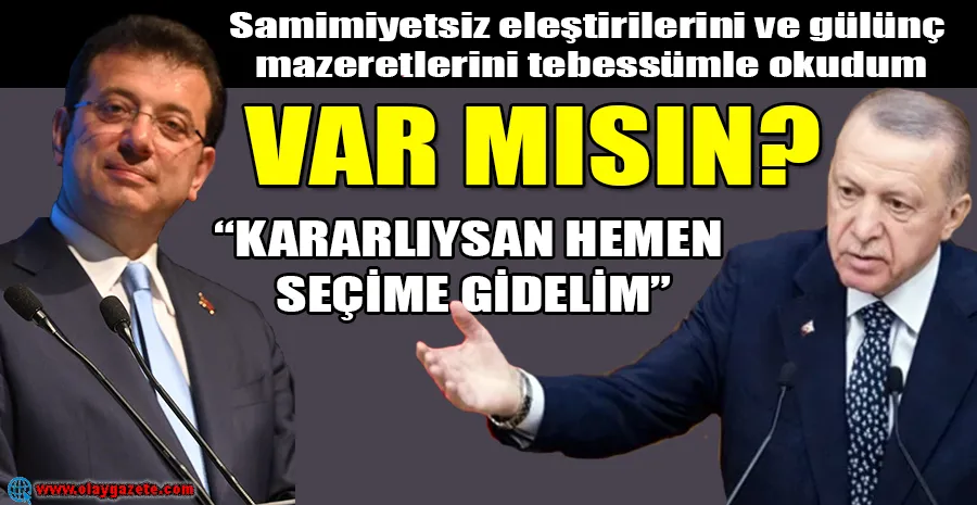Cumhurbaşkanı Erdoğan’ın Cerrahpaşa’daki İBB eleştirilerine, tutuklu Cumhurbaşkanı adayı Ekrem İmamoğlu’ndan sarsıcı bir rest geldi: “Çok kararlıysan hemen İstanbul’da, sonra Türkiye’de yarışalım Kararı millet versin. Var mısın?”