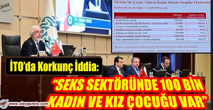 İTO Meclis Başkanı Erhan Erken’in üyelere yönelik yaptığı bir sunumda, çocuklar ve genç kızlara ilişkin paylaşılan veriler arasında “Sokakta 45 bin çocuk yaşıyor. Seks sektöründeki kadın ve kız çocuklarının toplamı 100 bin” ifadesinin yer aldığı öğrenildi. Sunumda dile getirilen bu rakamlar, kamuoyunda ciddi tartışmalara yol açtı.