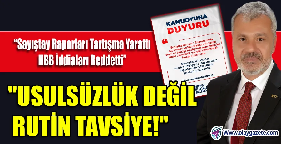 Hatay Büyükşehir Belediyesi (HBB), bazı basın yayın organlarında yer alan “HBB denetimden sınıfta kaldı: İhale yok, denetim yok” başlıklı haberlere ilişkin kamuoyunu bilgilendiren resmi bir açıklama yayımladı. Belediyeden yapılan açıklamada, söz konusu haberlerin Sayıştay Denetim Raporlarını çarpıtarak sunduğu ve kamuoyunda yanlış bir algı oluşturduğu vurgulandı.