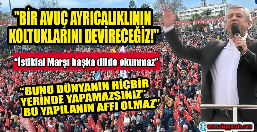 Özel, konuşmasının finalinde yalnızca bugünü değil, kurulmak istenen yeni dönemi de tarif etti. Türkiye’de adaletin yeniden tesis edileceğini, sandığın yeniden halkın önüne geleceğini, hukukun siyasetin aparatı olmaktan çıkarılacağını savunan Özel, mücadele kararlılığını güçlü sözlerle bitirdi.