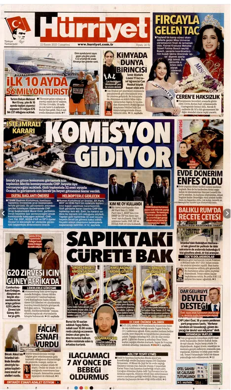 Yeni Şafak ise kararın öncesinde “İmralı’ya gidilmesin” manşetiyle sert bir çıkış yapmış ve MHP’yle karşı karşıya gelmişti. Ancak oylamanın ardından gazete aynı sert tavrı sürdürmedi; gelişmeyi sayfanın alt bölümünde küçük bir kutu içinde “Komisyon İmralı ziyaretine vize verdi” başlığıyla sınırlı tuttu. Manşette geniş yer ayrılmaması dikkat çekti.