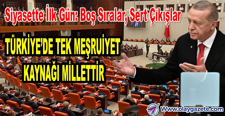 TBMM yeni yasama yılı açıldı. Yasama yılı açılışına CHP, TİP ve EMEP'li milletvekilleri katılmadı. Yeni Yasama Yılı Açılışı'nda konuşan AKP'li Cumhurbaşkanı Recep Tayyip Erdoğan, konuşmasında TBMM'de yürütülen süreç ve süreç komisyonuna ilişkin Devlet Bahçeli ve DEM Parti'ye teşekkür etti. Erdoğan, Tom Barrack'ın tepki çeken 'meşruiyet' açıklamasına "Türkiye'de tek bir meşruiyet kaynağı vardır; o da aziz milletimizin tertemiz iradesidir" ifadeleriyle yanıt verdi. Açılış konuşmasının ardından parti gruplarıyla tokalaşan Erdoğan'ın DEM Parti Eş Genel Başkanı Tülay Hatimoğlları'nın elini sıkmaması dikkat çekti.