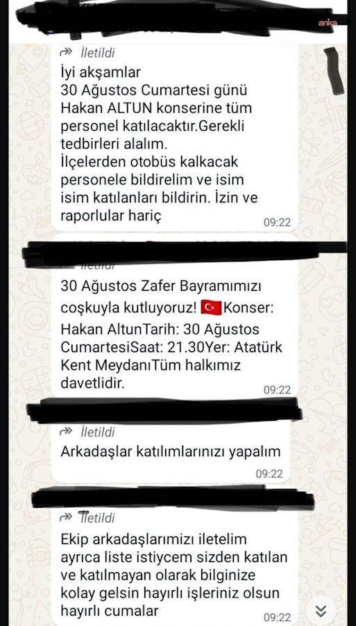 İddialara göre yalnızca merkez personeli değil, ilçelerde görev yapan çalışanların da konsere getirilmesi için otobüsler ayarlandı. Personel arasında oluşturulan mesajlaşma gruplarında bu talimatların paylaşıldığı öne sürüldü.