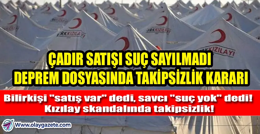 Ankara Cumhuriyet Başsavcılığı, 6 Şubat depremlerinin ardından çadır sattığı ortaya çıkan Kızılay’ın 19 yöneticisi hakkında yürütülen soruşturmada takipsizlik kararı vererek dosyayı kapattı. Savcılık, dosyada şüpheli sıfatıyla yer alan isimlerin hiçbirinin ifadesine başvurmadan soruşturmayı sonlandırdı.
