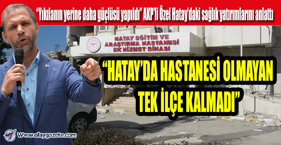 AK Parti Hatay Milletvekili Abdulkadir Özel, asrın felaketinin ardından Hatay’da sağlık altyapısının ilçe ilçe planlanarak daha güçlü bir şekilde yeniden hayata geçirildiğini açıkladı. Özel, deprem sonrası süreçte hastanesi olmayan hiçbir ilçenin kalmadığını vurguladı.