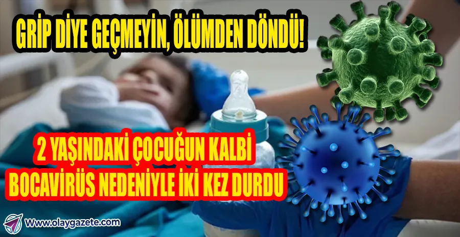 Grip benzeri üst solunum yolu enfeksiyonuna neden olan bocavirüse yakalandığı belirlenen küçük çocuk, nefes darlığı ve hırıltı şikâyetlerinin artması üzerine yeniden hastaneye kaldırıldı. Burada yaşanan kritik süreçte A.E.’nin kalbi iki kez durdu. Hekimlerin müdahalesiyle hayata döndürülen çocuk entübe edildi.