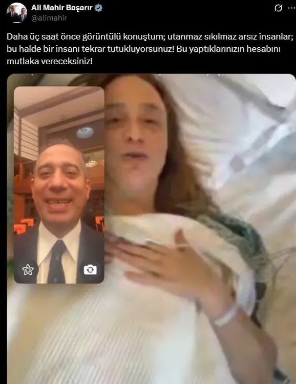 Başarır, Ayşe Barım ile hastane odasında gerçekleştirdiği görüntülü görüşmeden bir kareyi paylaşarak, "Daha üç saat önce görüntülü konuştum; utanmaz, sıkılmaz, arsız insanlar! Bu halde bir insanı tekrar tutukluyorsunuz! Bu yaptıklarınızın hesabını mutlaka vereceksiniz!" ifadelerini kullandı.