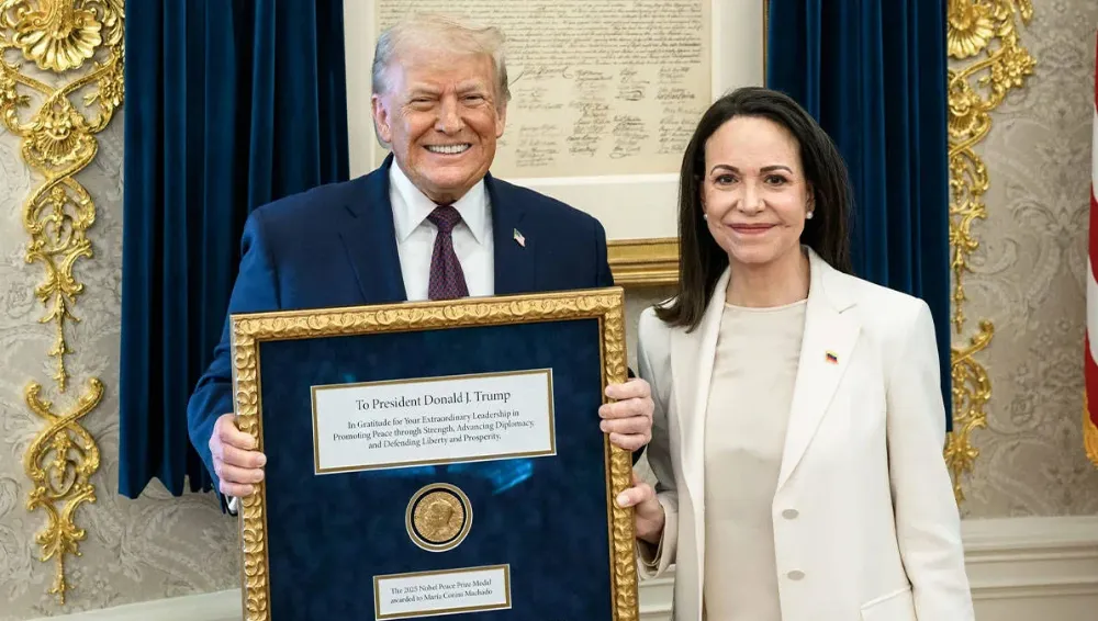 Machado, Beyaz Saray’daki görüşme sonrasında basın mensuplarına kısa bir değerlendirme yaptı. Açıklamasında, ABD Başkanı Donald Trump ile gerçekleştirdiği görüşmede, Nobel Barış Ödülü’nü Trump’a sunduğunu ifade etti. Ancak Machado, Trump’ın bu teklifi kabul edip etmediğine ilişkin herhangi bir ayrıntı paylaşmadı.
